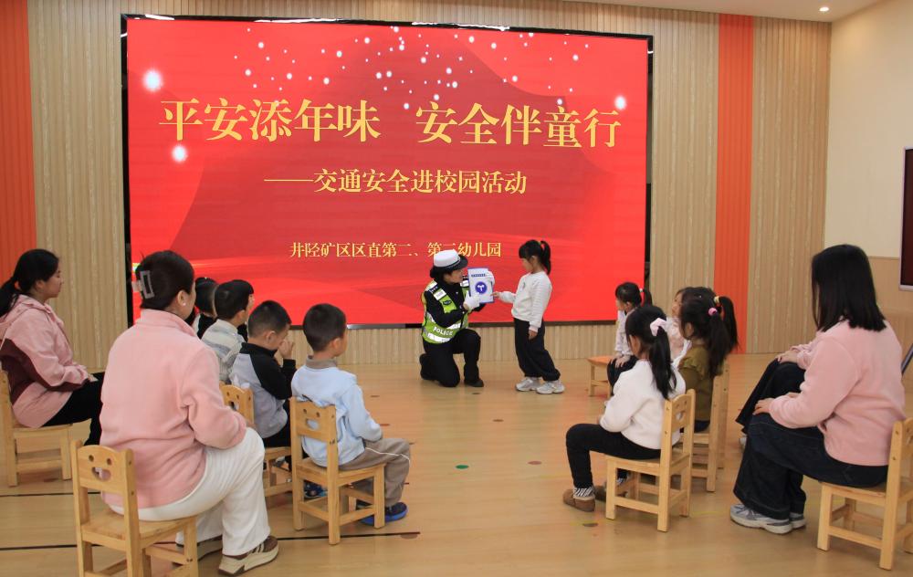 纵览客户端讯(温彦文、王菊)随着新年钟声的临近,节日氛围日渐浓郁。12月23日,石家庄市井陉矿区交警大队民警走进井陉矿区第二、第三幼儿园,为师生们送上了一份特殊的“新年安全礼包”——一场生动有趣的交通安全知识宣讲活动,在冬日里为孩子们系紧了“安全带”。