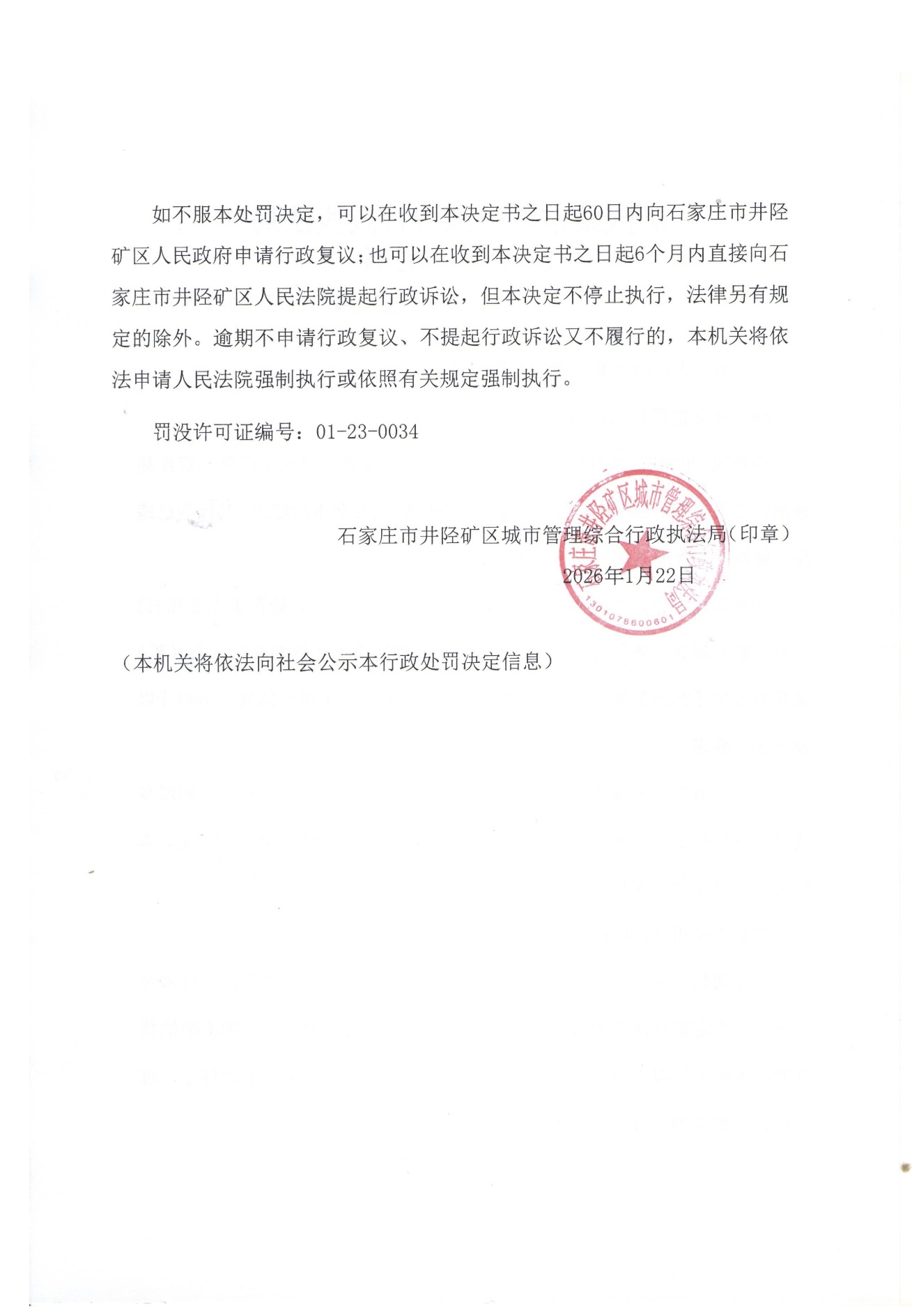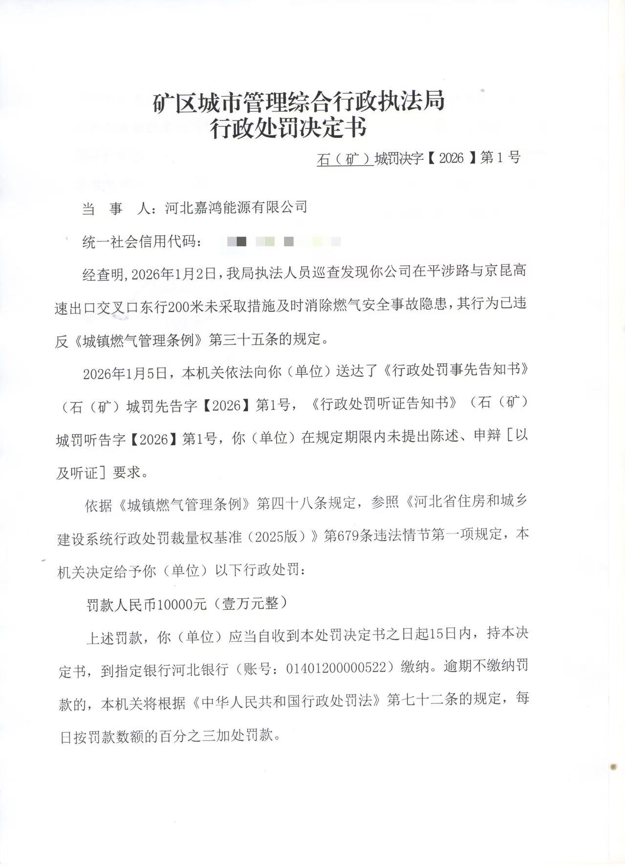 石(矿)城罚决字【2026】第1号