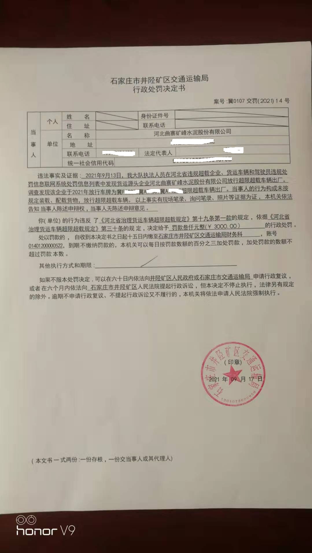 河北曲寨矿峰水泥股份有限公司未按规定装载、配载货物,放行超限超载车辆案