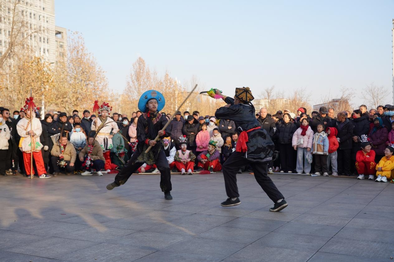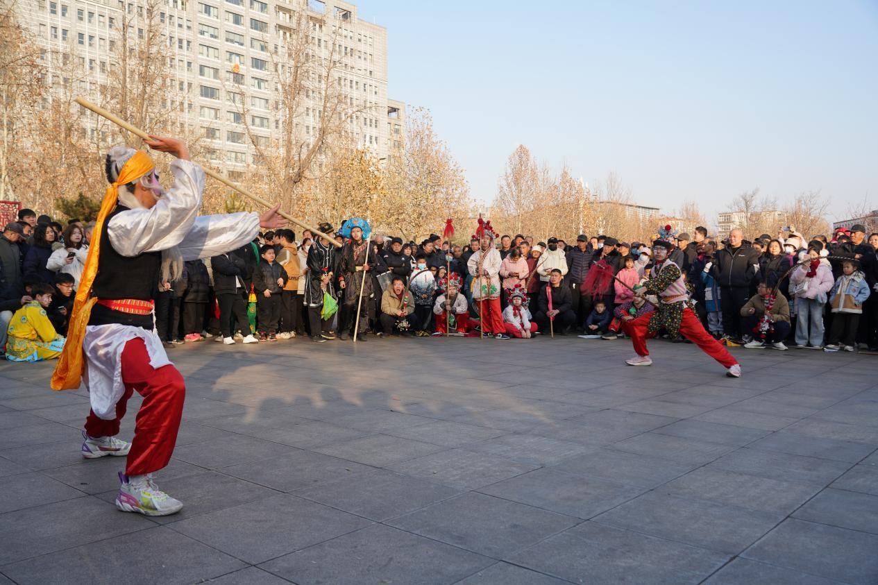 活动现场,省级非遗项目井陉矿区戳脚率先登场,队员们身姿矫健、刚劲勇猛、灵活快疾,身形辗转间尽显传统武术的独特魅力,让现场观众近距离感受到了传统武术的精妙与震撼,不少观众纷纷拿出手机记录下这精彩瞬间。