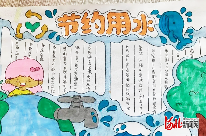 结合不同学段学生特点,学校开展分层实践活动。一、二年级学生在老师带领下学习正确节水方法,排查校园水龙头、饮水设备的滴水、漏水问题,用实际行动守护水资源。三至六年级学生开展节水主题绘画、手抄报及创意书签制作活动,以画笔传理念,用文字发倡议,展现出强烈的节水决心与创造力。
