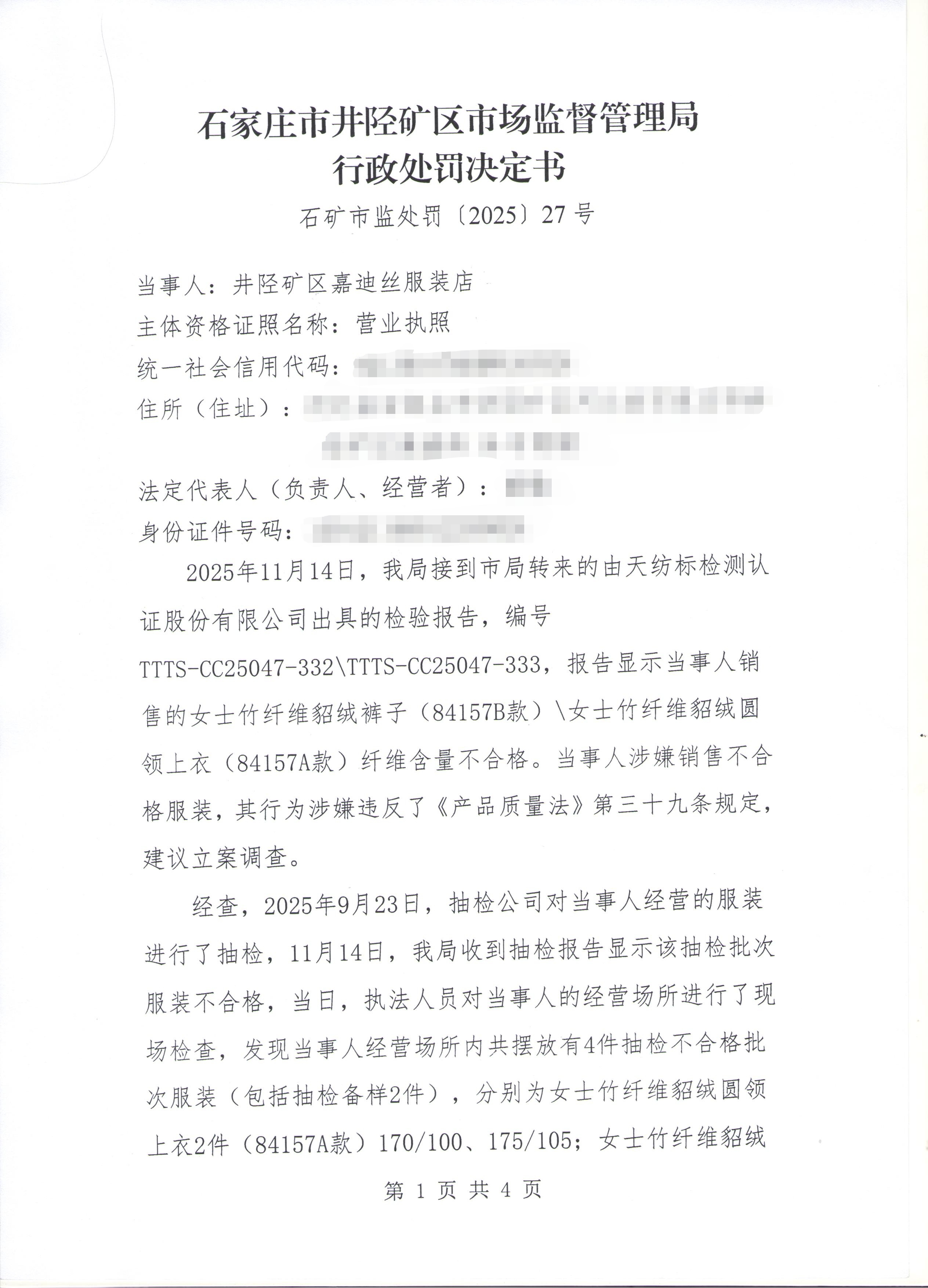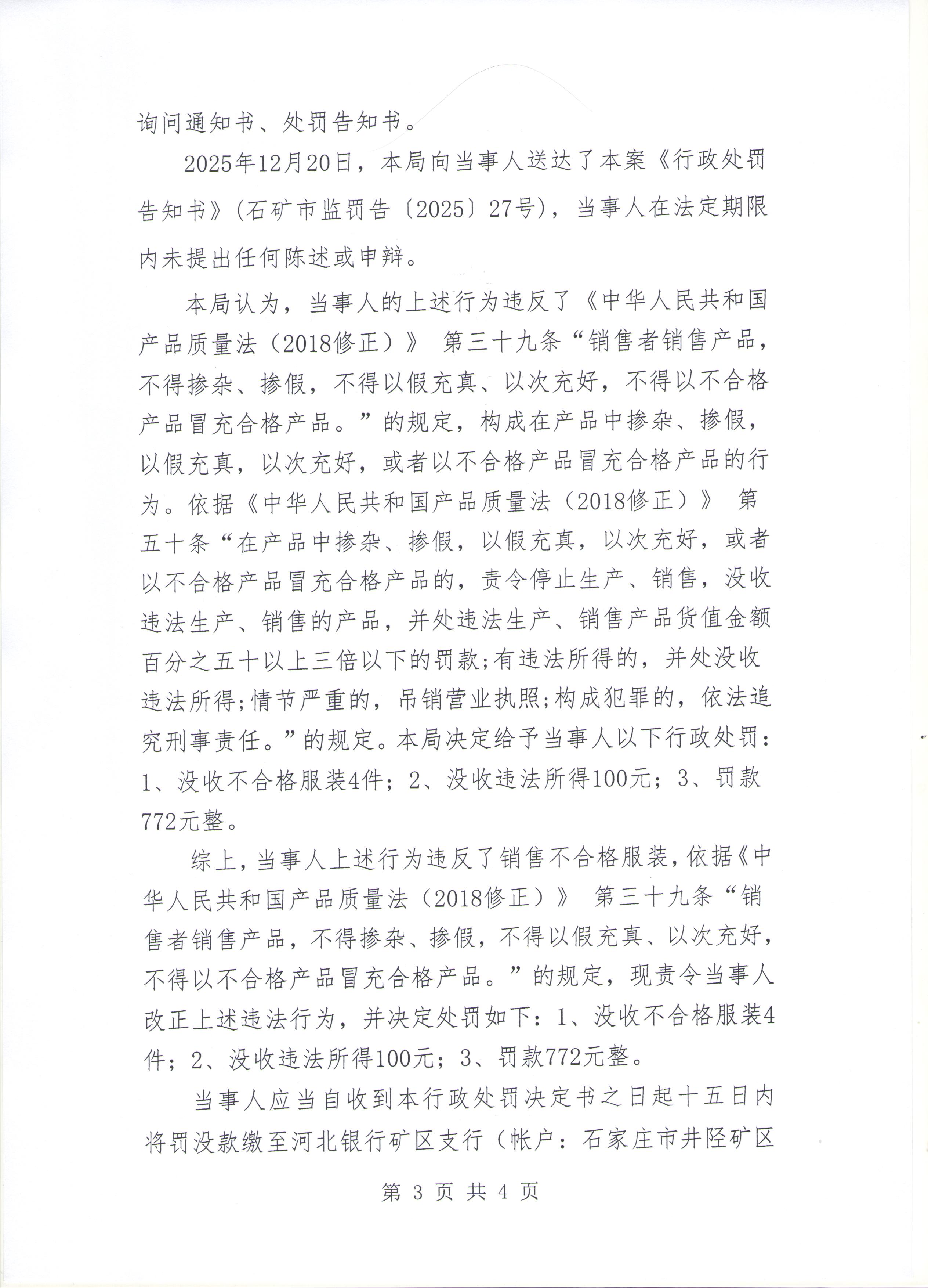行政处罚决定书 石矿市监处罚〔2025〕27号